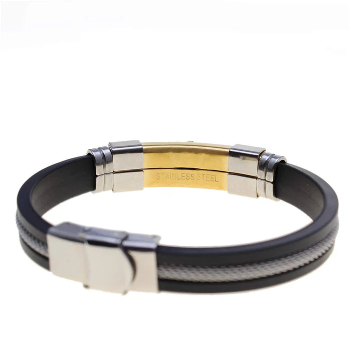 Two Tone Farvahar Bracelet Gold Plating Over High Quality 316L Stainless Steel. Tarnish Resistant And Hypoallergenic. Rubber Bracelet , Nice And Unique Design Nice Gift For Someone Special You Will...
