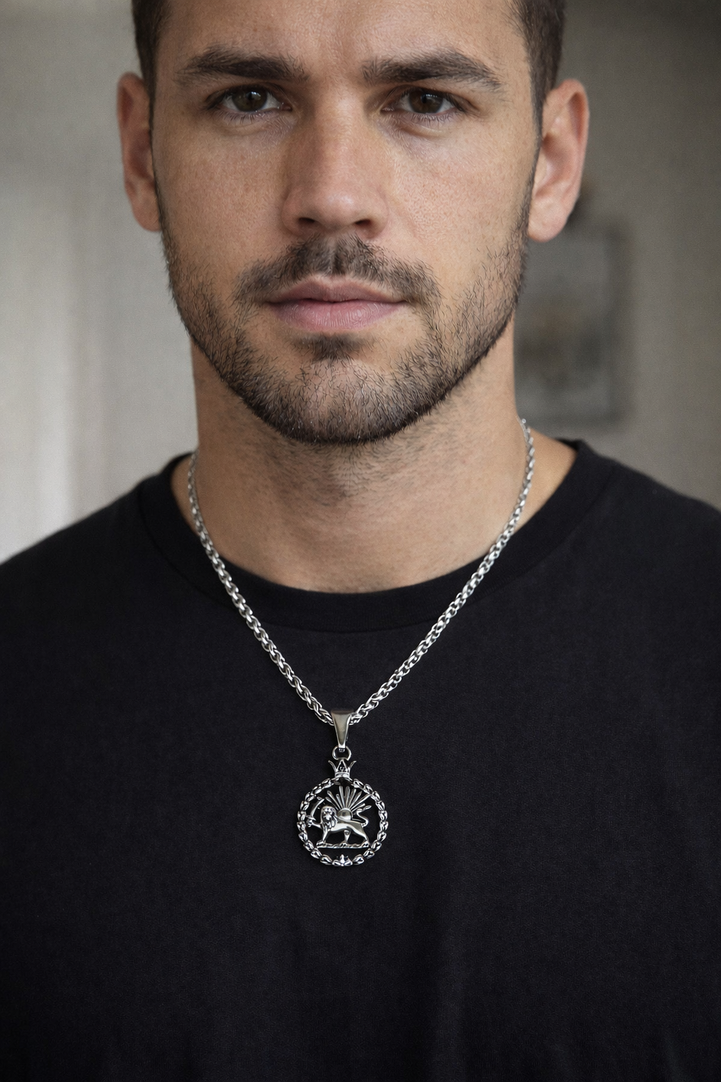 Iranian Persian Pahlavi Lion and sun Shiro Khorshid Necklace